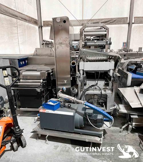 Thermoforming Machine. Packaging capacity: 9cycles/min. Machine feed: 645mm. Film width: 390mm. Frame length: 11.5m. Maximum thermoforming height: 80mm. Lower film material: APET/X/PE. Top film material: PET/X/PE. Power: 53kW. Consumption: 93A. 400V, 30Hz, 3ph