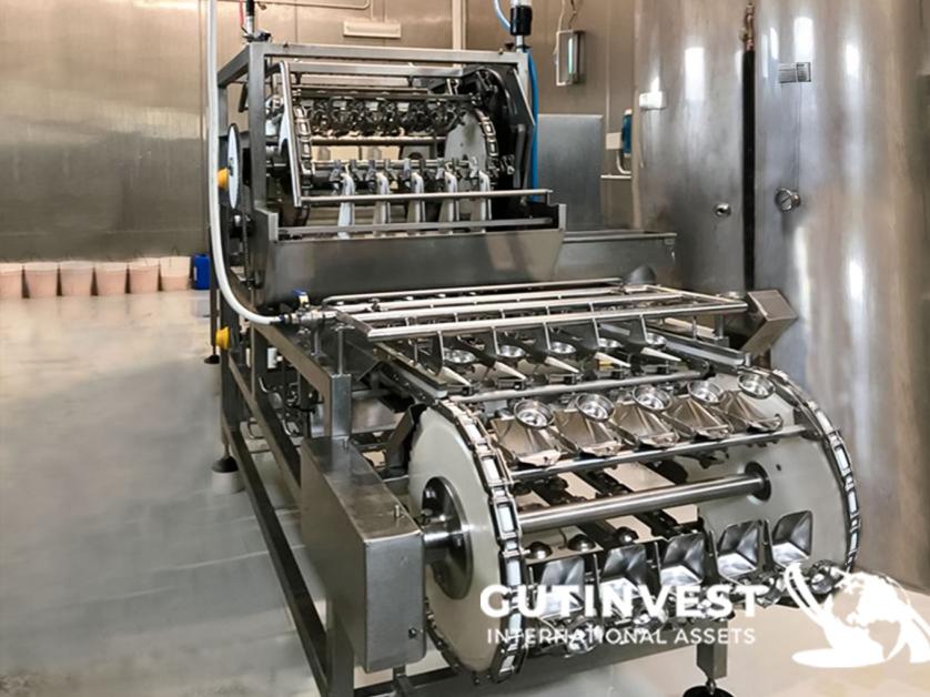 Capacidad: (200-300 huevos/min, velocidad ajustable). El proceso de pelado es sencillo y directo. Tras la carga manual mediante ventosa, los huevos se transportan a través de rodillos que permiten alinearlos para una separación perfecta de las cáscaras. La máquina cuenta con varias baterías de descascarilladoras, compuestas por cucharas para recoger la yema/clara y una cuchilla para cortar la cáscara. Una vez realizado el corte, se separa la yema de la clara, que se transportará a contenedores especiales. La cáscara se retira de la máquina mediante un transportador de tornillo.
