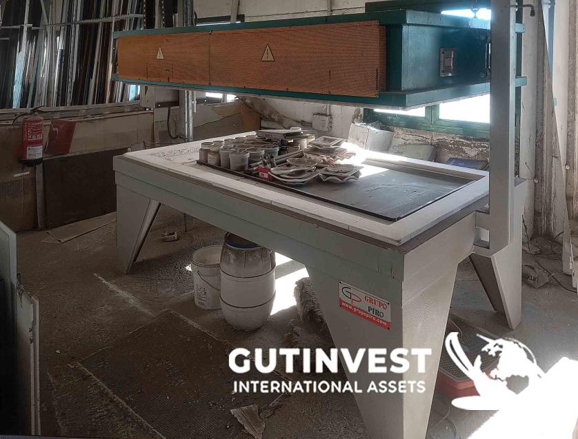 Medidas interiores: 2,02 x1,02 x 0,25 metros (515 L), temperatura máxima de trabajo 950 °C. Potencia: 11Kw. 380V, 50Hz. El uso ha sido para hacer cristales decorativos de puertas, ceniceros y demás cristalería decorativa. Posibilidad de adquirir cristales y moldes que se pueden vender en su conjunto.